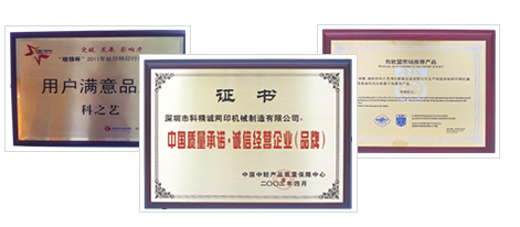 獲中國絲網印刷行業協會,國際印刷機械質量監督檢驗中心 “產品質量信得過企業”